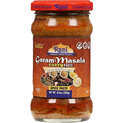Garam Masala Curry Spice Paste Inspired by Rani’s world famous family garam masala spice blend, comes our delicious garam masala curry paste! Our authentic blend of aromatic spices, coriander, paprika, black pepper, cinnamon and many others make for beautifully balanced dishes. Ideal for a wide range of Indian dishes both vegetarian & meat alike.