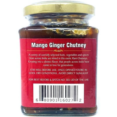 Authentic Indian Chutney Mango chutney is made from diced green mangoes cooked with sugar. Spices are added to distinguish the different types of chutneys. Hot mango chutney is spiced with chilli powder which give the chutney heat and a deep amber color. Sweet Mango chutney allows the pallet to appreciate the flavor of the mango, adding a hint of vinegar for sourness, while major grey chutney mixes raisins, ginger powder, chilli powder and an array of spices to give complexity to the chutney. Try Rani Chutney’s with pizza, salads, burgers, sandwiches, cheeses and anything else you can imagine!