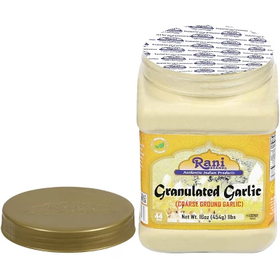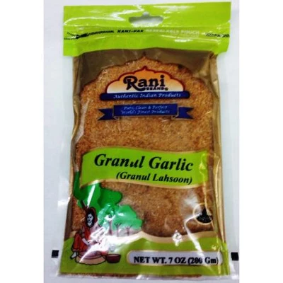 Authentic Indian Spices Granulated garlic is a form of garlic that has been dried and ground into granules, making it a convenient and shelf-stable alternative to fresh garlic. It has a slightly coarser texture than garlic powder and retains more of the garlic’s natural flavor, though it’s less intense than using fresh garlic.