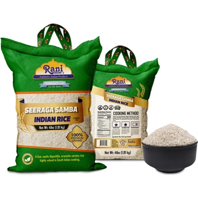 Seeraga Samba Indian Rice Seeraga Samba rice, also known as Jeera Samba, is a small-grained, aromatic rice variety predominantly grown in Tamil Nadu, India. It is prized for its fragrant, cumin-like aroma and its ability to absorb spices and flavors well while maintaining a firm texture. Seeraga Samba rice is commonly used in South Indian cuisine, especially in making biryani, such as the famous Chettinad and Ambur biryanis. It is also ideal for making variety rice dishes like lemon rice, tamarind rice, and coconut rice, where the rice grains remain separate and fluffy, complementing the bold spices and flavors in the dishes.