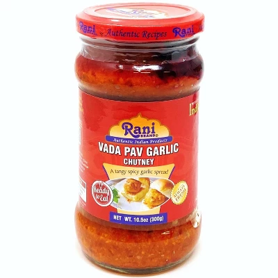 Vada Pav Garlic Chutney A tangy spicy garlic spread, most commonly used in the making of Vada Pav (A potato dumpling sandwich). It can be used as a sandwich spread or anywhere you would like to add a little spicy garlic zip to your food! Rani Brand products strive to bring you the most authentic taste from back home!